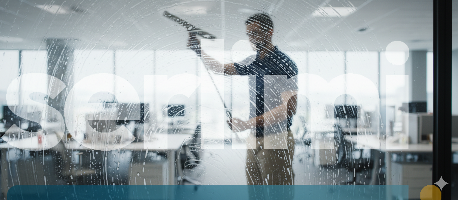 Profesional de Serlimi limpiando cristales con técnica especializada